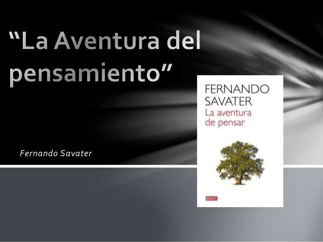 Lorena BravoPlatónAristótelesTomás de AquinoThomas HobbesRene DescartesJon LockeBaruch SpinozaGottfried LeibnizLibro de La Aventurade Pensar Salvater. El libro la aventura de pensar de Fernando Savater se adentra básicamente en el tema de la filosofía a través de los relatos de los diversos filósofos que nos han enseñado muchas cosas a través de los años. La Aventura Del Pensamiento El prestigioso filósofo español Fernando Savater transmite en este ciclo su pasión por el pensamiento.