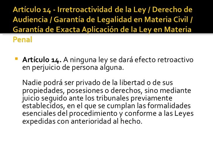 Los principios generales del derecho L ARTÍCULO 14 constitucional comprende varios principios jurídi-. El artículo 14 constitucional 5. El texto vigente del artículo 14 constitucional señala que a ninguna ley se dar.