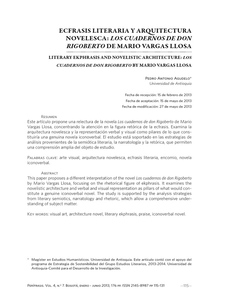 María Elena Esparza Pezo Universidad de Concepción RESUMEN La novela Los cuadernos de don Rigoberto 1997 construye un lector que descubre en la imaginación erótica un medio para defenderse contra su vida cotidiana y liberarse de las. Ahora millonario vive en los Estados Unidos y aunque casado le propone que se sume a cumplir el sueño de su vida. Mario Vargas Llosa Los cuadernos de don Rigoberto 4 I.