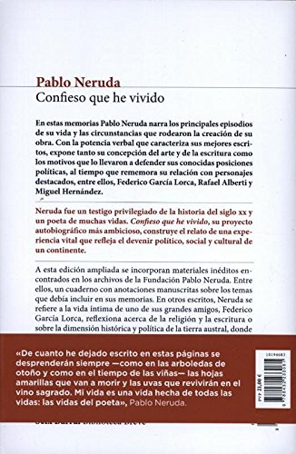 Nota media 765 Muy bueno. Confieso que he vivido las memorias en las que Pablo Neruda trabajó hasta poco antes de su muerte en 1973 se publicaron sin algunos de los textos escritos por el premio nobel chileno unos escritos inéditos entre ellos uno sobre Federico García Lorca que ahora se. Sinopsis de Confieso que he vivido.