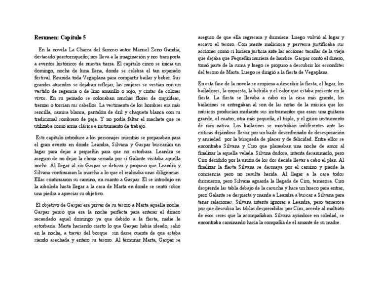 Manuel Zeno Gandía nació en Arecibo en 1855 Documents Similar To Resumen La Charca Cap 5. Resumen Completo Introduccion Al Saber. Es sencilla tiene unos ojazos negros pestañas largas y suaves.