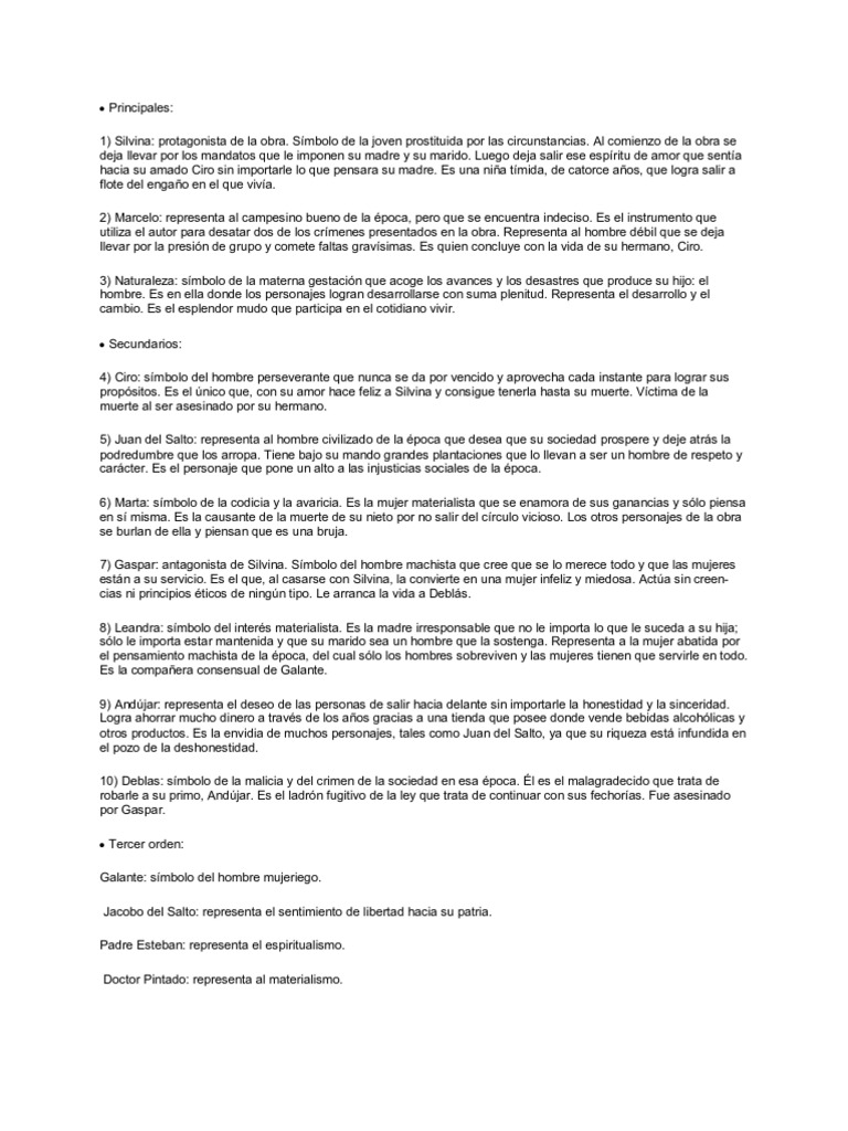 ANALISIS DE LA CHARCA CAPITULO V I. Personajes principales a Descripción completa 1. Está casada con Gaspar.