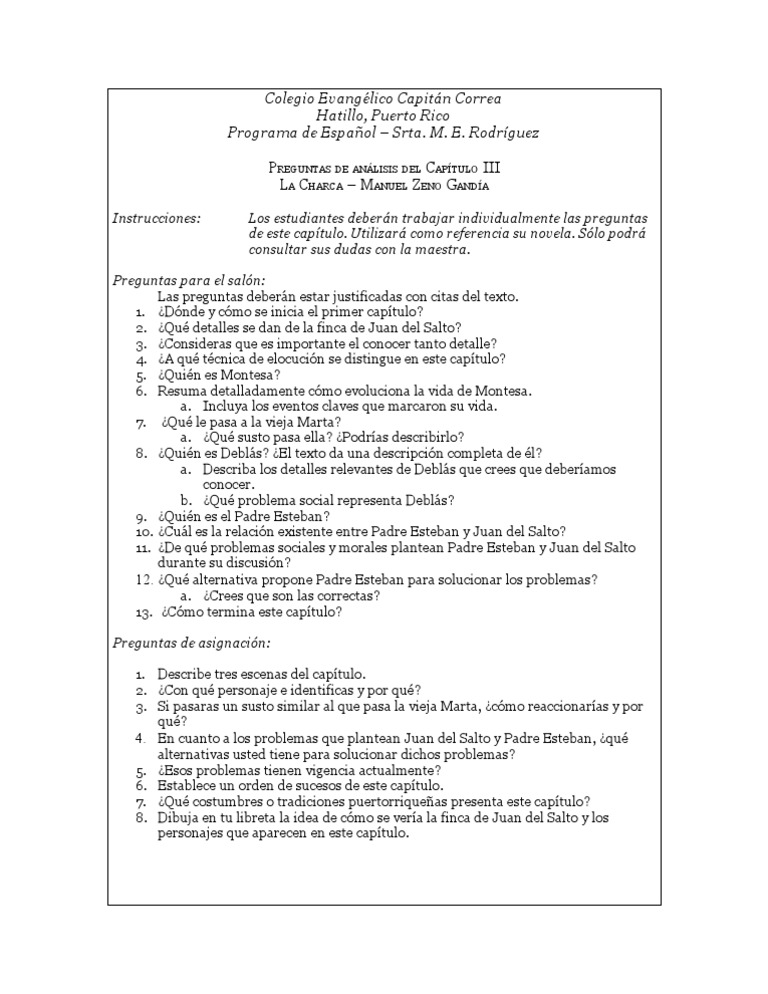 La Charca Las Preguntas De Los Capitulos Trabajos Solimar Marie
