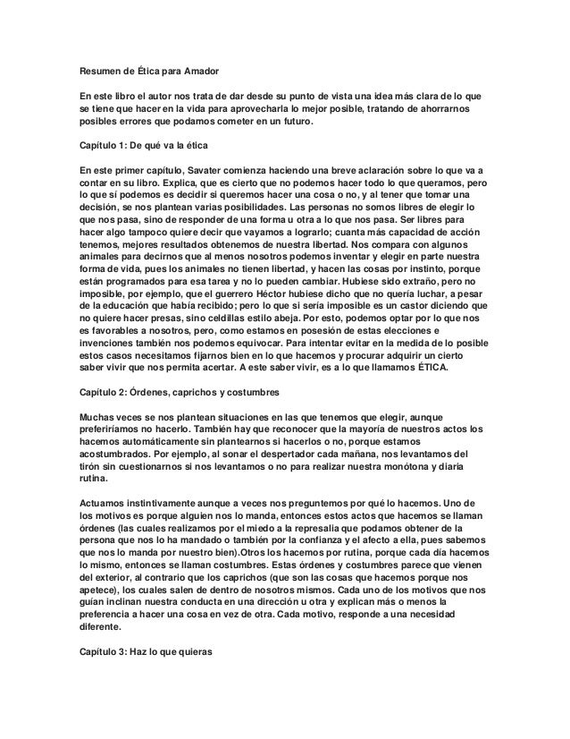 Resumen Del Libro Etica Para Amador
