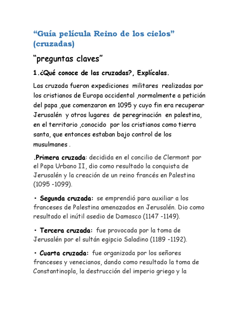 Trabajo Sobre La Pelicula El Reino De Los Cielos Docsity