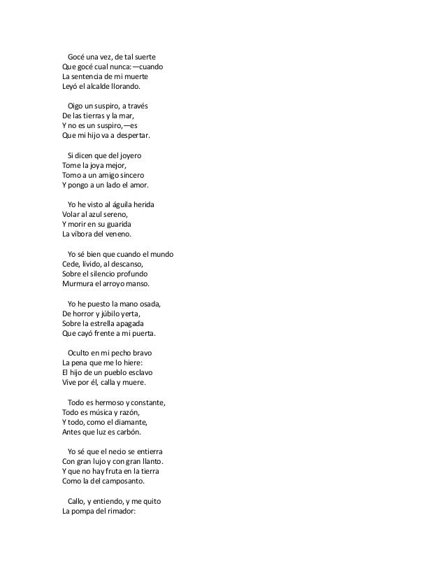 Motivo de pena ajena. Por ejemplo en sus Versos Sencillos obra escrita por él en 1890 y publicada al año siguiente en Nueva York Estados Unidos llegó a señalar al respecto. En tu regazo amoroso Todo mi amor doloroso Todas mis ansias y afrentas.