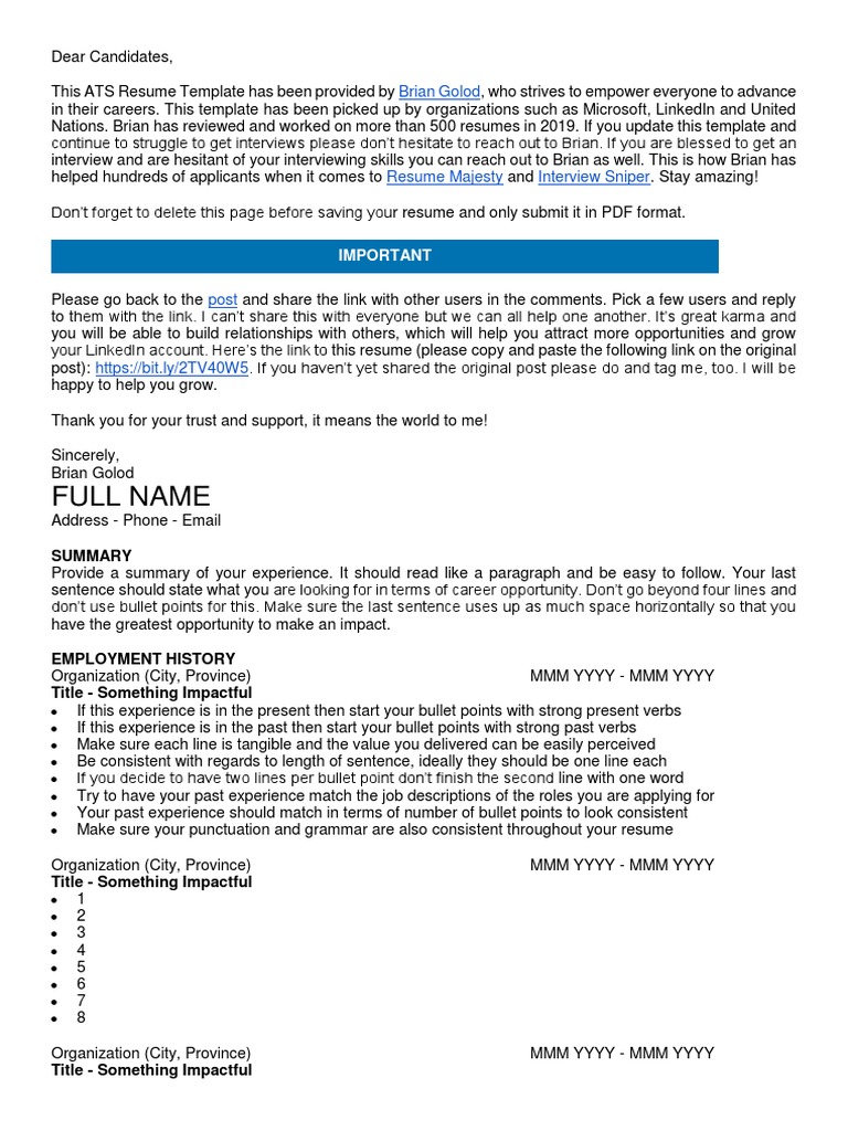 Ad Create a perfect resume with our online curriculum vitae maker in just a few steps. Brian golods ats resume template 1. Show Blaze Your Own Trail with Jordan Mendoza Ep S3E2- From Argentina to Canada with Brian Golod - Jan 11 2021 Brian helps people immigrate to Canada SAFELY and avoid making unnecessary mistakes that can cost them money time and even shutter their dream.
