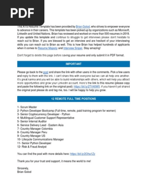 Brian Golod S Ats Resume Dear Candidates This Ats Resume Template Has Been Provided By Brian Golod Who Strives To Empower Everyone To Advance In Course Hero